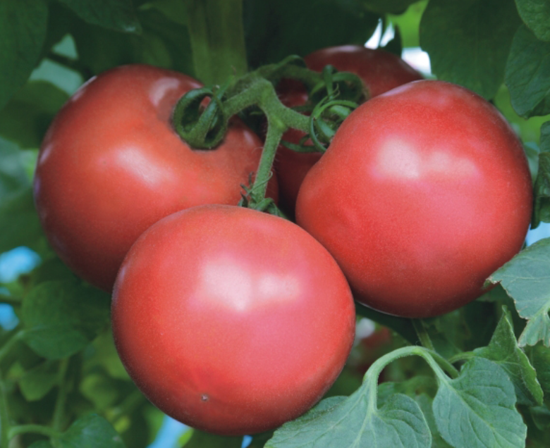 Ранний гибрид крупноплодного томата. Формирует кисти по 5-6 темно-розовых, очень однородных по цвету, плодов массой 180-250 г. Процесс окрашивания происходит легко и быстро на протяжении всего периода плодоношения. Плоды обладают приятным сладким вкусом с легкой кислинкой. Благодаря толстой стенке, гибрид прекрасно транспортируется. Растение сбалансированное, полуоткрытого типа, с междоузлиями средней длины. Для пленочных теплиц.