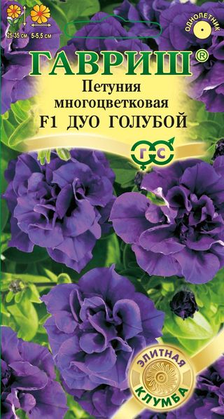 Многоцветковая махровая серия, очень рано всупает в цветение. Роскошное однолетнее растение с высокой устойчивостью к неблагоприятным погодным условиям. Эта гибридная форма петунии имеет объемный компактный и ветвистый кустик высотой 25-35 см и диаметром 25-30 см. Цветки синие, многочисленные, до 10-13 см в диаметре, похожи на цветки гвоздики, с прочной фактурой, не страдают во время дождей. Посев проводят с февраля по март. При зимнем посеве всходам необходима подсветка. Всходы появляются через 7-12 дней. На постоянное место высаживают, когда минует опасность заморозков. Цветет с конца мая весь сезон. Светолюбива и достаточно засухоустойчива. Предпочитает легкие, плодородные, хорошо дренированные почвы. Украсит контейнеры, вазоны, балконы, подоконники, рабатки, бордюры.