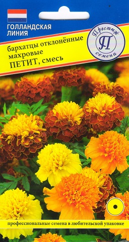 Однолетник. Компактные, обильно цветущие невысокие однолетники с ярко-желтыми соцветиями станут великолепным украшением в вашем саду. Бархатистые цветки на длинных цветоносах собраны в оригинальные махровые хризантемовидные соцветия до 5 см в диаметре. Цветение обильное и продолжительное с июняд о заморозков. Высаженные рядом с овощными культурами, бархатцы уменьшают их поражение грибковыми заболеваниями, защищают от некоторых видов нематод. Красиво смотрятся в сочетании с примулами и цинерариями. На рассаду высевают в начале апреля. Предпочитает открытое солнечное место. Растение светолюбиво и засухоустойчиво. Для хорошего роста и цветения требуется регулярный полив и подкормки 2-3 раза в месяц.