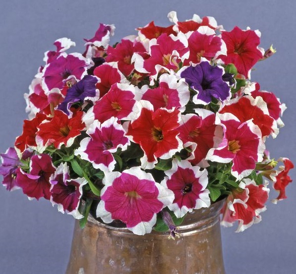 Состоит полностью из ярких и восхитительных цветков насыщенного цвета. Крупные и очень нежные цветки поражают своей пышностью цветения. На компактном кустике высотой 15 см распускаются большое количестве упругих цветков диаметром 6-8 см разнообразных окрасок. Цветов так много, что совсем не видно листьев. Цветет до заморозков. Идеальна для террас и балконов, клумб и рабаток. Отличается устойчивостью к жаре, дождю и ветру и стойко выдержат любую непогоду.