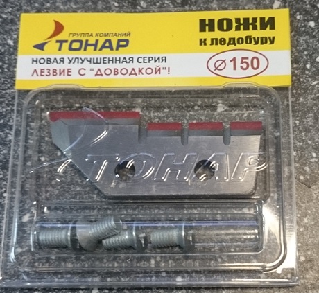 Комплект ножей для ледобура диаметром бурения 130 мм. Ножи имеют уникальную конструкцию – две ступеньки и выверенные углы режущих плоскостей обеспечивают легкий скол льда и его выведение из зоны резания. Благодаря этому, по скорости бурения ледобур с диаметром бурения 130 мм может легко соперничать с ледобурами диаметром 100 мм, лишь немного превосходя их по прилагаемым усилиям.