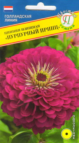 Однолетник. Высота растения - 90 см. Относится к сортотипу георгиноцветных цинний. Соцветия пурпурно-лиловые, махровые, диаметром 12 см. Используется для создания композиции при посадке на клумбе. Хорошо смотрится в букетах. Высаживают в контейнеры и вазоны, в балконные ящики. Сочетается с хризантемами, астрами. Высевают на рассаду в конце марта - апреле либо сразу в грунт. При посеве на рассаду семена равномерно распределяют по поверхности влажного субстрата, присыпают тонким слоем вермикулита или компоста, накрывают прозрачным стеклом или плёнкой для поддержания влажности. Избегают переувлажнения. При температуре 18-20 градусов всходы появляются через 7-10 дней. После прорастания плёнку или стекло убирают. Выращивают на свету, но избегая попадания прямых солнечных лучей. Подросшие растения высаживают в конце мая - начале июня с шагом 20-25 см. В открытый грунт циннию высевают в середине мая, под плёнку на глубину до 1 см. После прорастания плёнку убирают, всходы прореживают. Теплолюбивое, засухоустойчивое растение, предпочитает солнечные места. Хорошо растет на рыхлых, хорошо дренированных (без застоя воды), плодородных почвах. В сухую, жаркую погоду растения поливают. Подкармливают раствором полного минерального удобрения каждые 4 недели. Цветение: с середины июля и до заморозков.